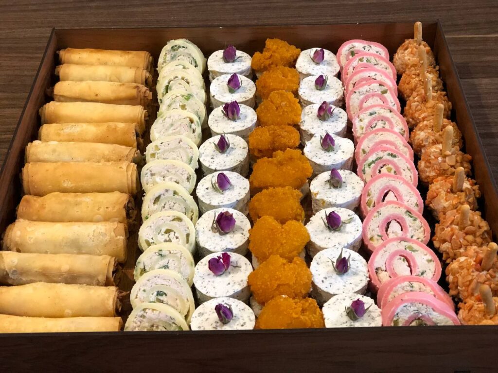 شامل:اسپرینگرول ،رولت مرغ، راتا پنیر و گردو، میگو سوخاری، توپک مرغ آجیلی