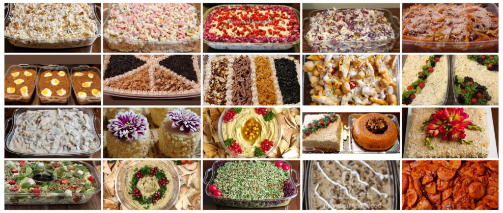 🍲خوراک ها حدود ۲كيلو و سالادها (داخل پیرکس یکبارمصرف و برای غذاهای گرم با قابلیت گرم شدن در ماکروویو)