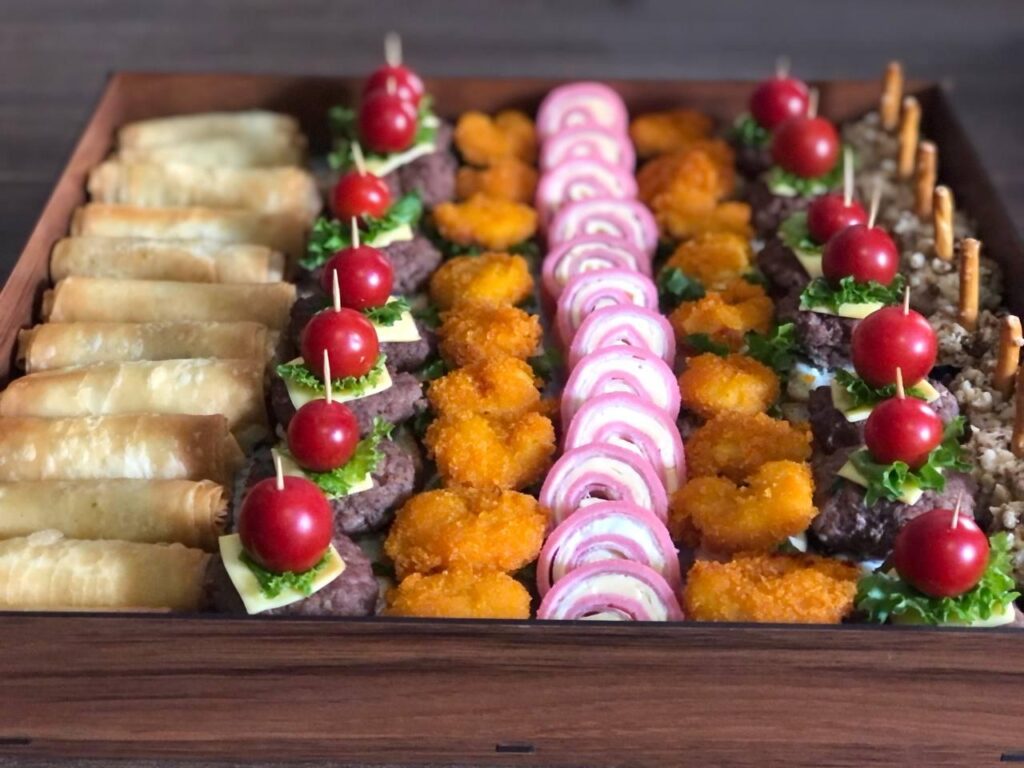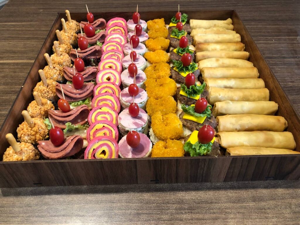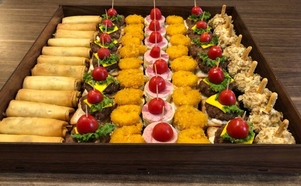 شامل : اسپرینگرول، بیبی چیزبرگر، میگو سوخاری، کرپ رول ژامبون، توپک مرغ آجیلی