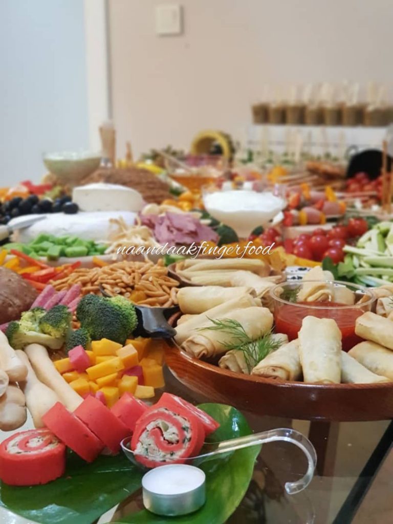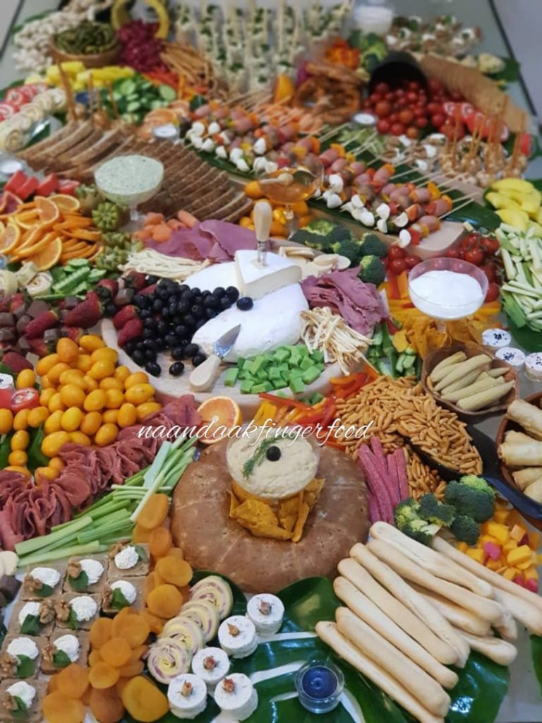 یک میز خوشگل و خوشمزه به سبک نانداک مناسب برای حدود ۳۵ تا ۴۰ نفر شامل انواع مزه، ۲ مدل پنیر، بیکن ،پپرونی، میوه فصل، سبزیجات با دیپ مخصوص، کراکر، بادام، برگه، شکلات، نان های مخصوص و حجیم و۳ نوع فینگر فود شامل: کاناپه پنیر و گردو اسپرینگرول و رولت ژامبون