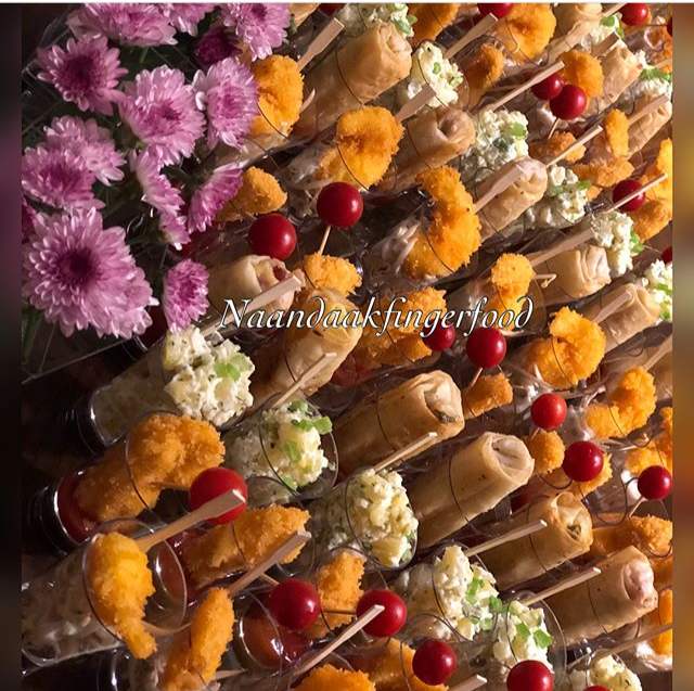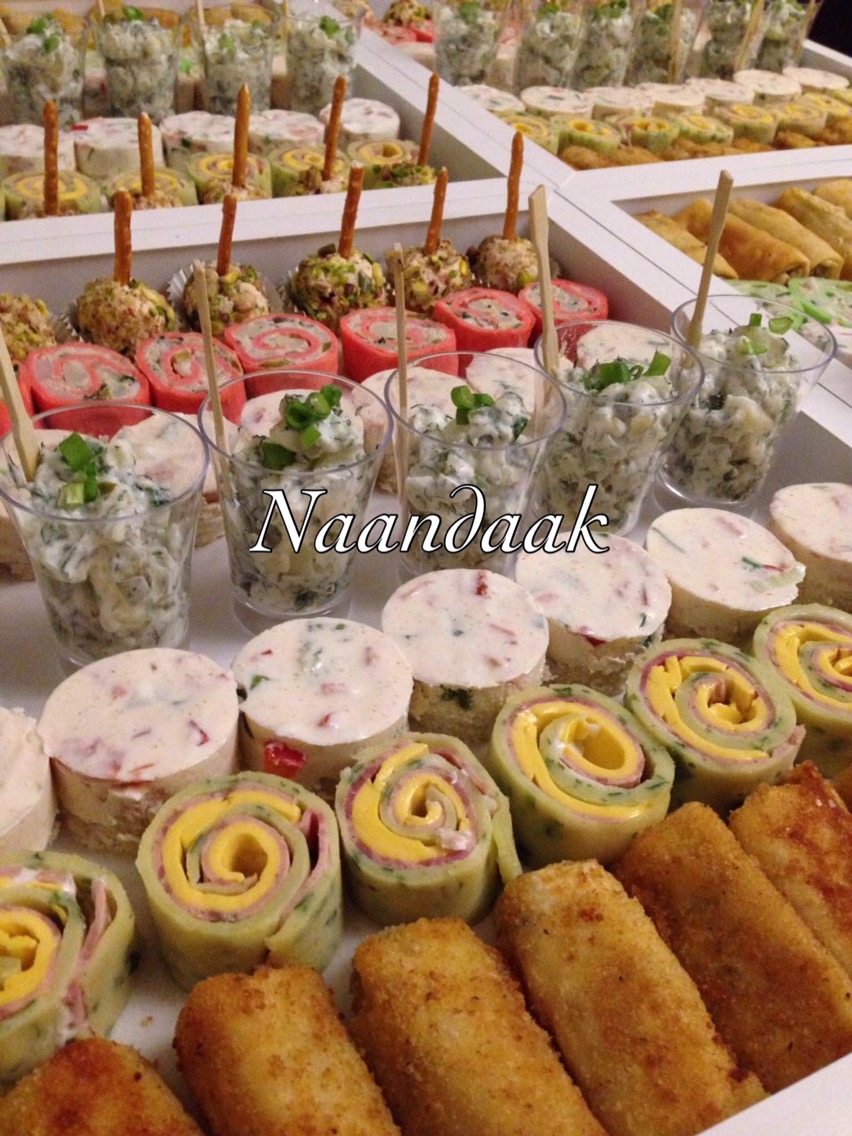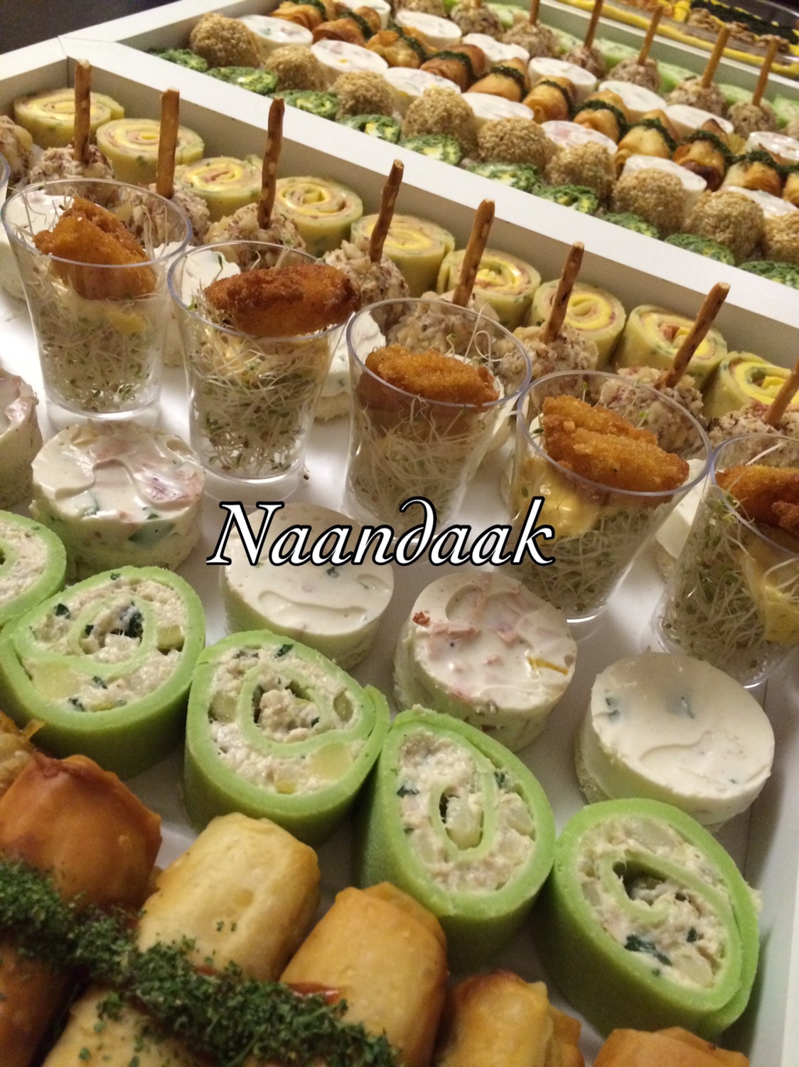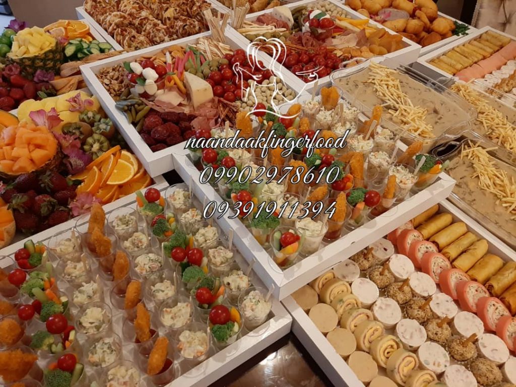 شات سبزیجات با دیپ مخصوص، شات سالاد روسی، شات مینی فیله، سینی میوه، سینی مزه پنیر، مینی پیتزا، پیراشکی گوشت، سمبوسه، سینی فینگرفود، چیکن استروگانوف